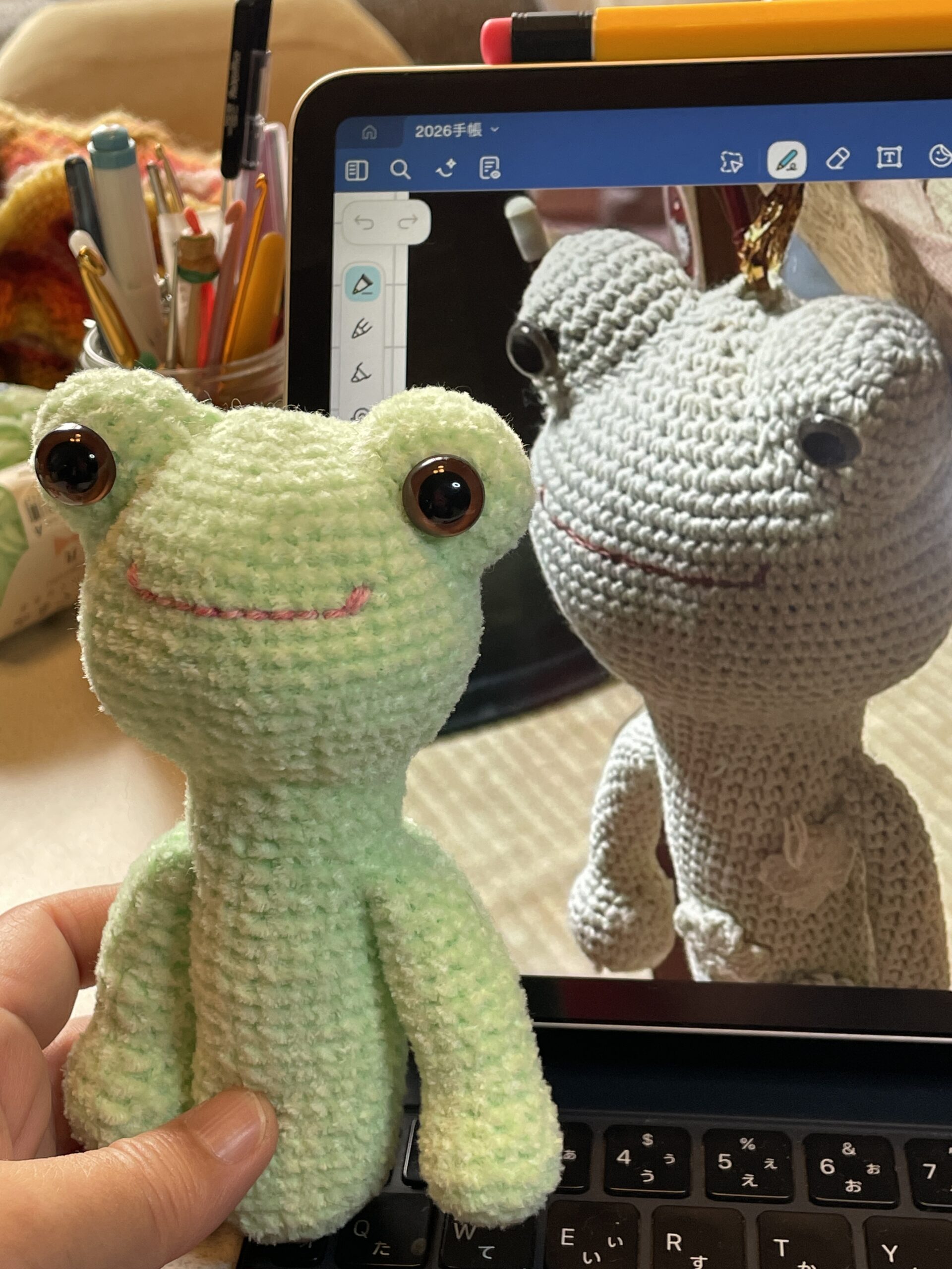 ただ20年近く前の話で、当時持っていたあみぐるみの本がもう手元にありません。送られてきた写真を見ながら、なんとなく編めるかな?どうかな?って感じで始めました。