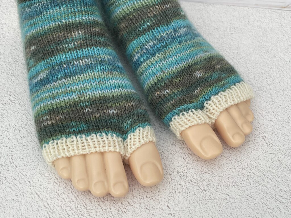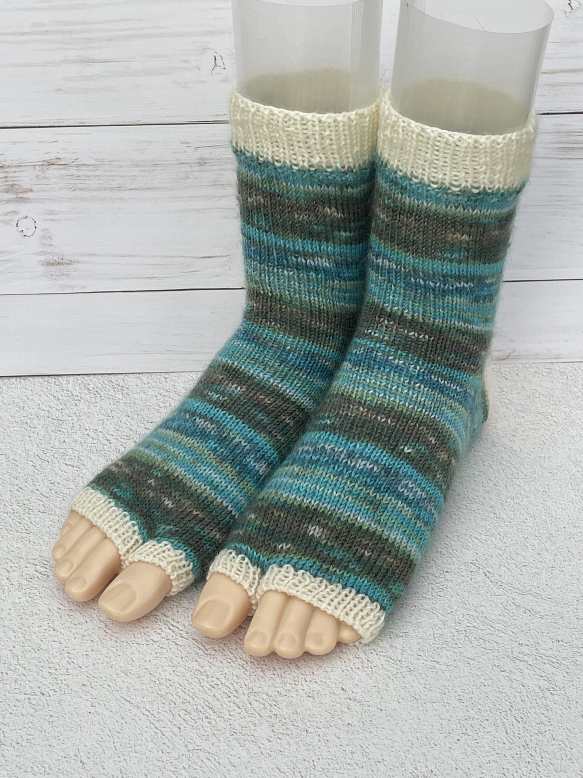Opal Farbe5521で編んだ指なしの足袋ソックスです。