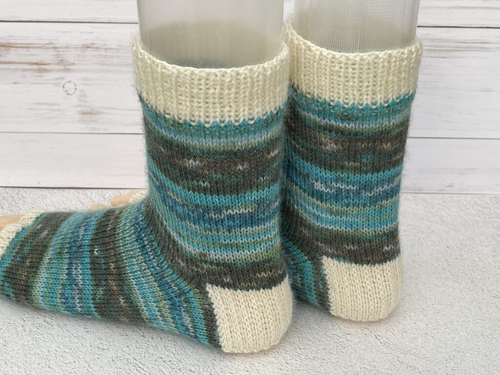 | 中細ソックヤーン約52g 段染め糸約38.5g 白糸約 13.5g | |