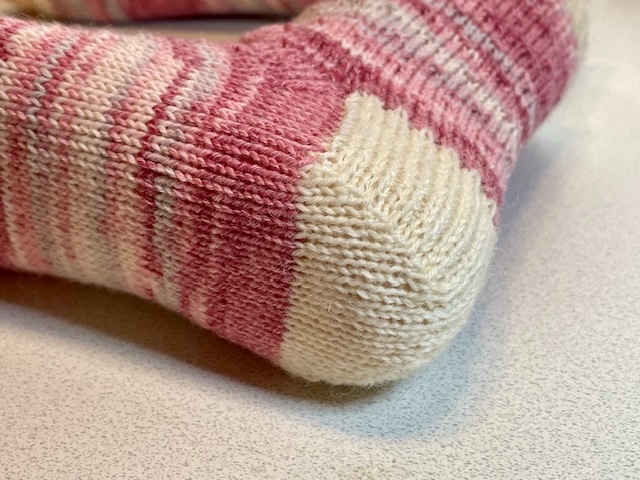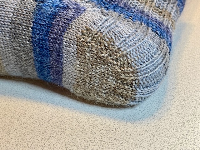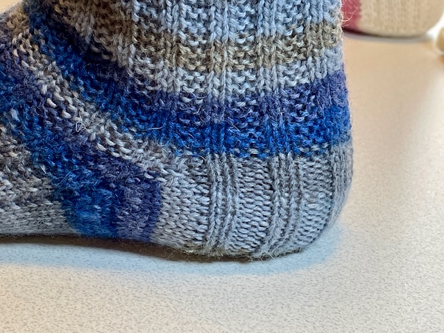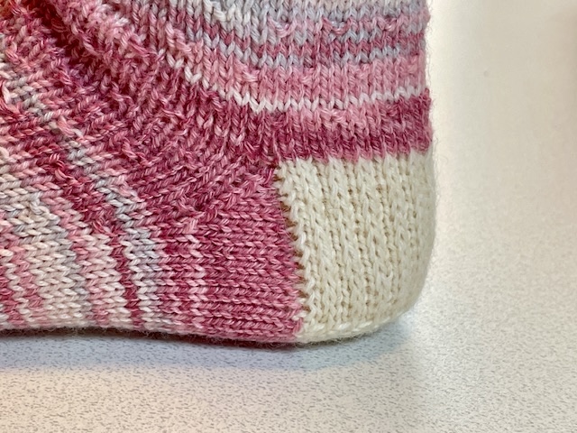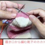 前の記事の動画で紹介したカカトの編み方ですが、カカトのカーブを編むときの目数の話をします。