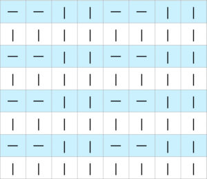 本当に簡単で、メリヤス編みと、二目ゴム編みと同じ編み方を、交互に繰り返すだけでこういう模様になります。