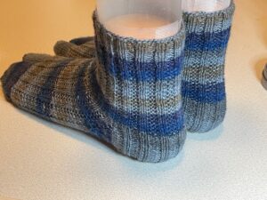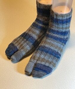 いつもの足袋ソックスですが、表目と裏目だけの簡単な模様編みを入れています。